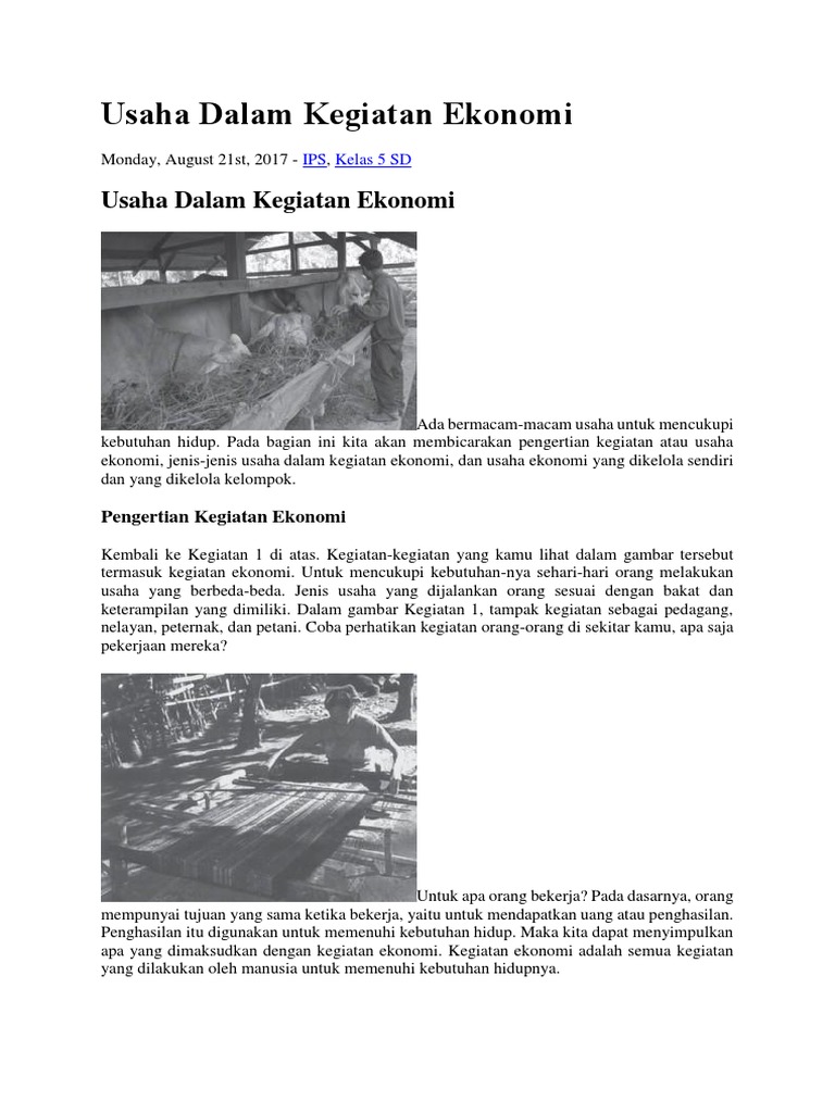 Kegiatan ekonomi yang dilakukan setiap orang melibatkan orang lain. Kegiatan ekonomi yang dilakukan setiap orang melibatkan orang lain. Input berupa barang mentah dan barang setengah jadi, pada dasarnya hanya merupakan salah satu faktor. Menuliskan informasi penting yang terdapat dalam bacaan. Perasaan sudah anda jawab sendiri itu.kalau pertanyaan nya bagaimana cara menghargai kegiatan usaha.